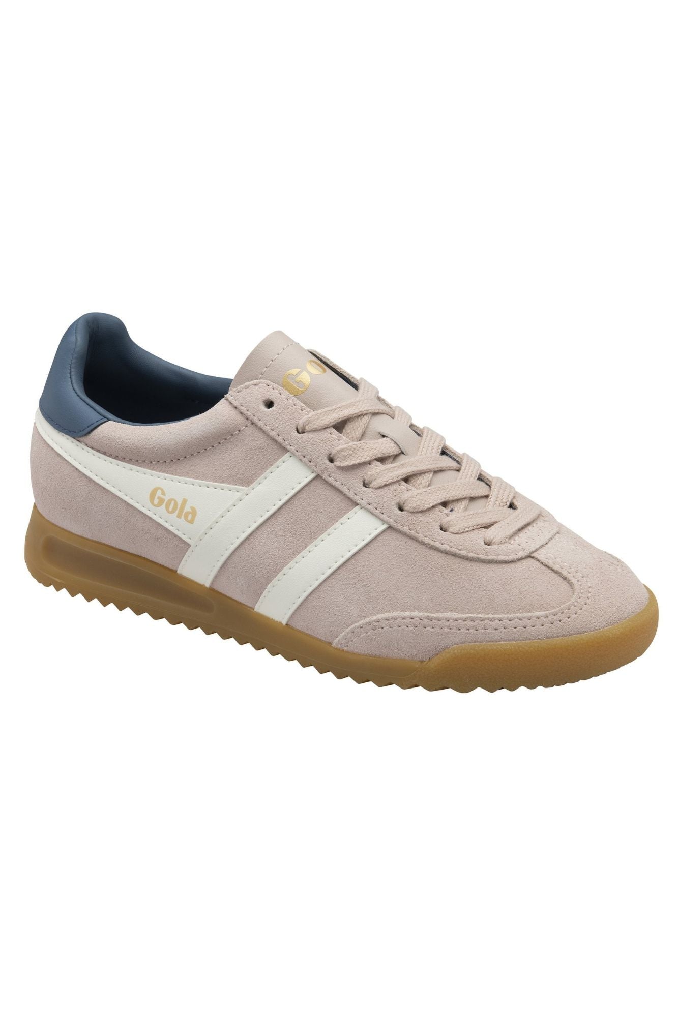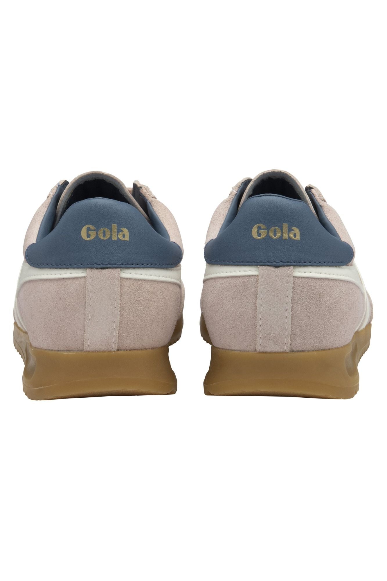 Elevate your footwear collection with Torpedo Sneakers, a revitalized 1985 Gola Classics design that perfectly balances vintage appeal with contemporary flair. These suede sneakers showcase a stunning rose pink, off-white, and moonlight blue palette that adds a feminine touch to the iconic terrace style. Featuring the distinctive Gola side wingflash branding, these authentic women's sneakers are the ultimate statement piece for fashion-forward individuals who appreciate timeless design with a modern twist.