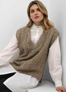Col en V ultra doux au toucher, pull avec fentes latérales. Idéal pour la transition vers l'automne, à porter avec un chemisier blanc ou seul avec un jean et des bottes.
