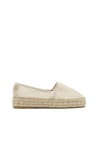 Introducing Flo Flats, the must-have for warm sunny days. Made from a lightweight mesh upper with rope-wrapped sole, these espadrilles are perfect for summer. With a 35mm heel height and leather lining, they are both comfortable and stylish. Made in Spain, these casual beauties are sure to become a staple in your wardrobe!