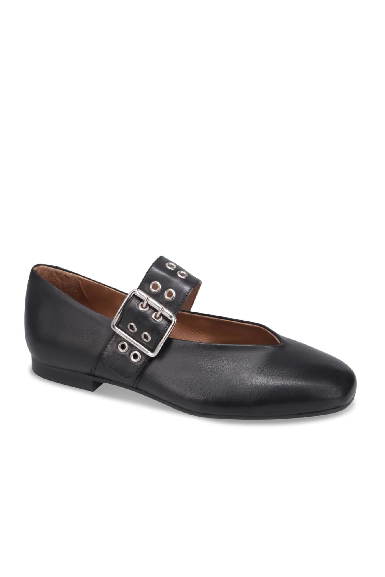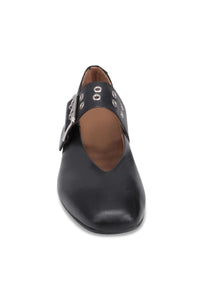 Zephyr isn't your average Mary Jane. Crafted from luxe leather with an oversized grommeted buckle, this flat delivers serious attitude wrapped in a sleek silhouette. It's the perfect blend of punk edge and polished sophistication—the shoe you reach for when you're ready to make a statement. Because sometimes, basics just don't cut it.