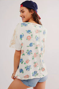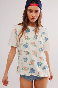 Get ready to elevate your wardrobe with the Nina Boheme Printed Tee. With its slouchy, oversized fit and soft fabrication, this tee is both comfortable and stylish. The breezy design, scoop neckline, and dropped sleeves add to its unique charm, while the printed detailing and raw seam detailing make it a standout piece. Perfect for adding some flair to your everyday look!