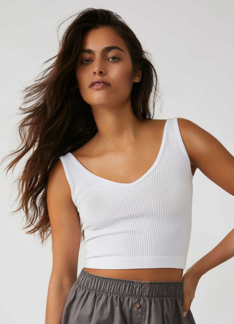 Glissez-vous dans ce Brami Solid Rib et préparez-vous à afficher vos courbes ! Un haut court Free People ultra-flatteur doté d'un élégant décolleté en V, conçu pour épouser tous les bons endroits. Votre soirée sera certainement grésillante !