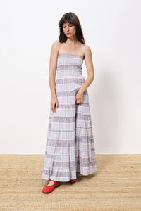 The Dalel Dress is more than just a strapless long dress. Made with a fluid 100% cotton fabric and featuring an exclusive FRNCH print, this dress offers a unique and stylish look. The sleeveless design and smocked chest provide comfort and a flattering fit. Embrace your individuality with the Dalel Dress!