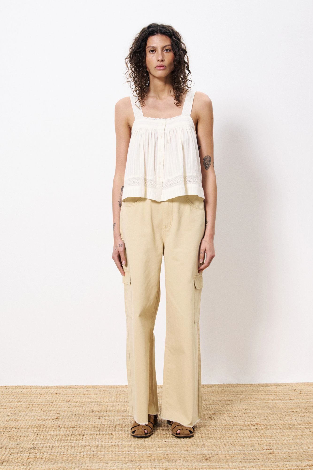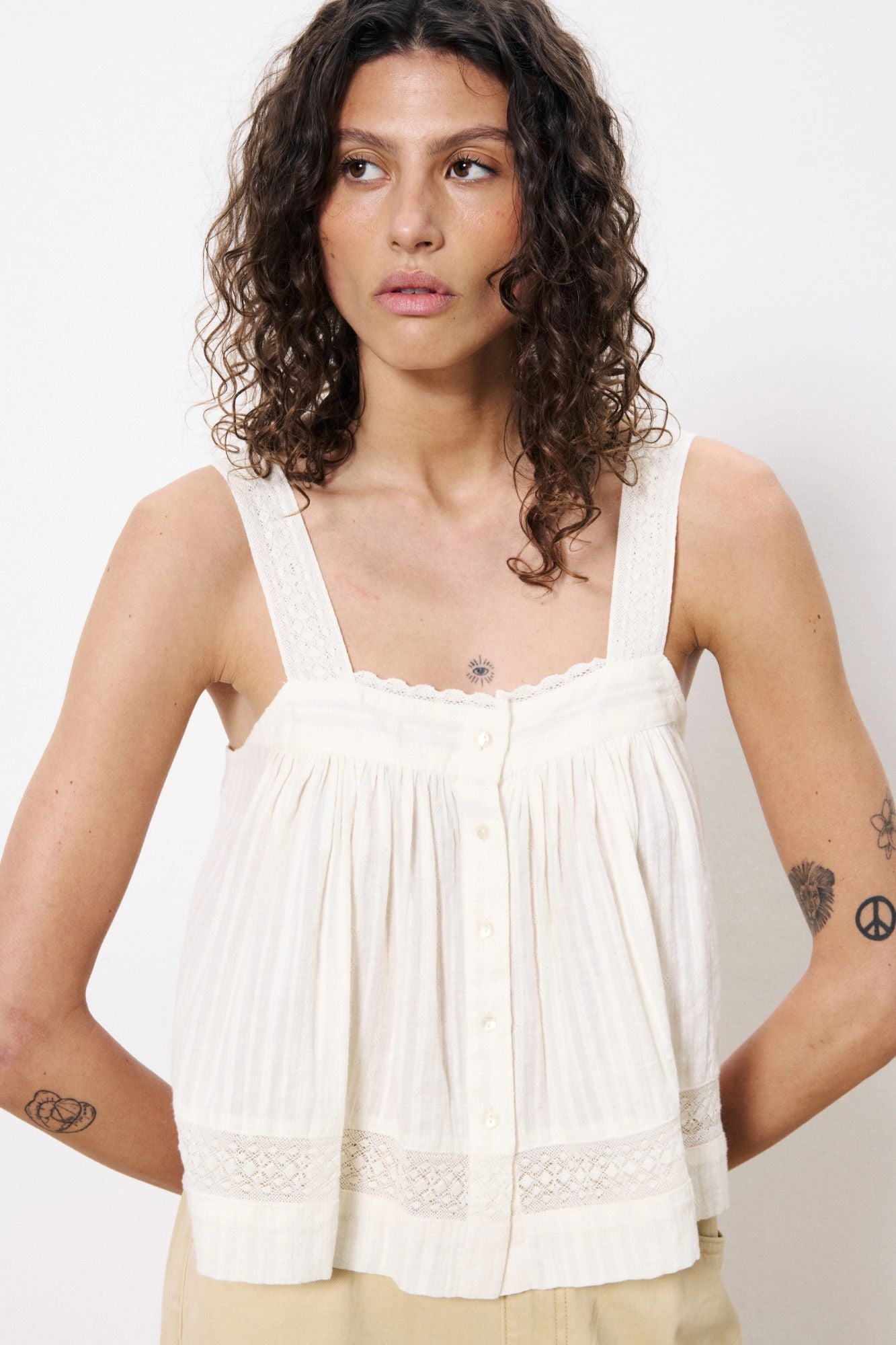 Introducing the Lalita Top - a stylish sleeveless top with intricate embroidery details. Made from fluid 100% cotton fabric, this top offers maximum comfort and breathability. Its wide straps and front buttons add a touch of versatility, making it perfect for any occasion. Upgrade your wardrobe with this stunning top now!