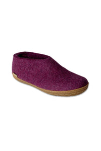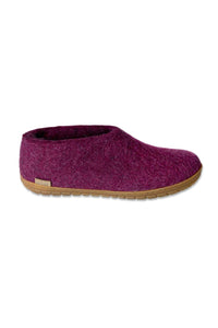 Experience cozy comfort with glerups. Crafted from 100% natural, itch-free wool, these felted slippers provide full-foot warmth and a snug barefoot fit inspired by Danish tradition. The waterproof natural rubber sole ensures durability and versatility, perfect for indoor wear or outdoor adventures like camping or relaxing on your balcony. Available in a vibrant cranberry hue, these slippers combine natural materials with practical design for warmth and style wherever you go.