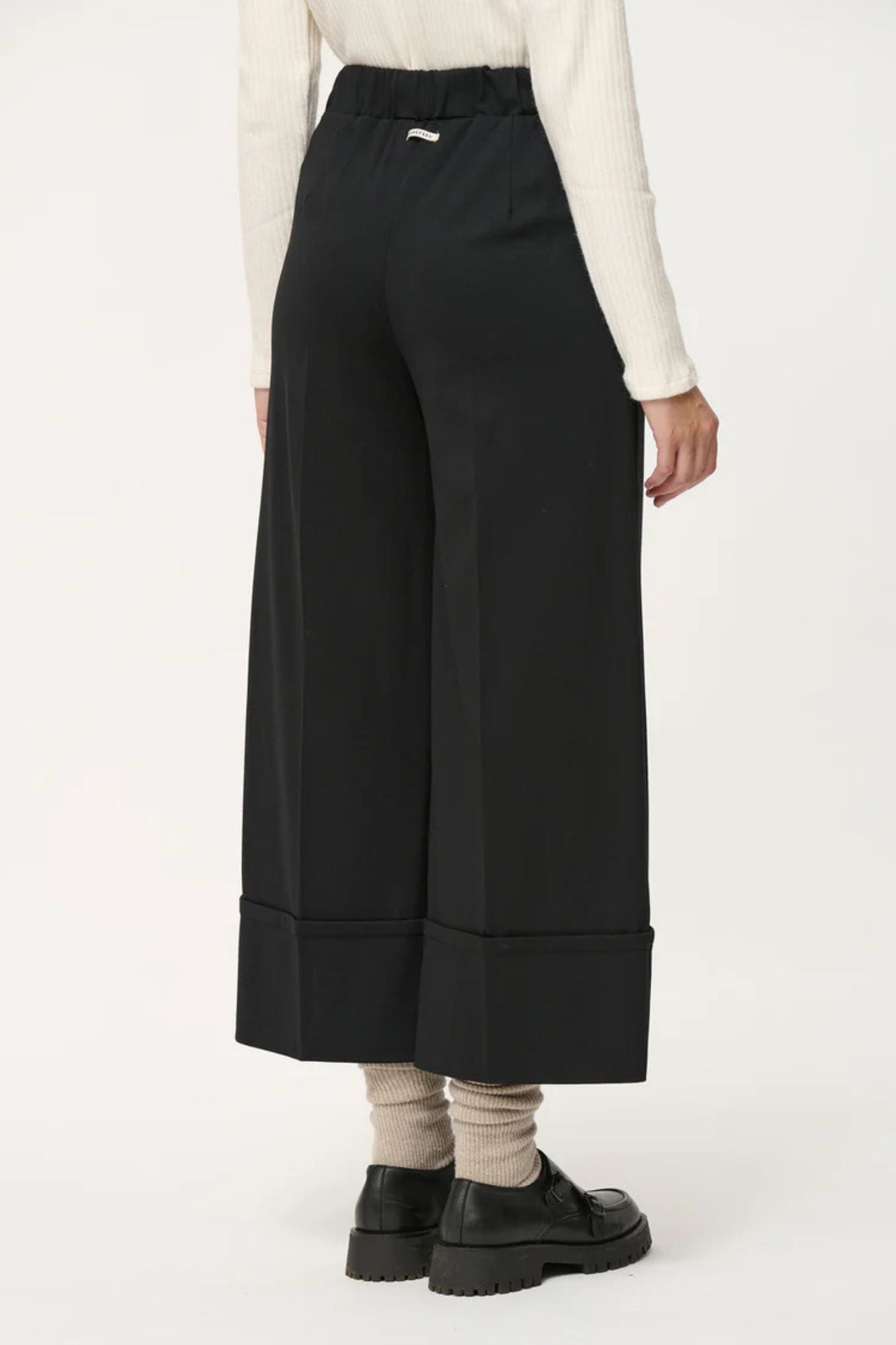 Introducing the Sophino Wide Leg Pant, expertly crafted with stretch Milano jersey for a comfortable and flattering fit. These 7/8th length trousers feature large turn-ups and an elasticated back belt, making them versatile and stylish for any occasion. Complete with Italian pockets for added convenience. Upgrade your wardrobe with this must-have piece.