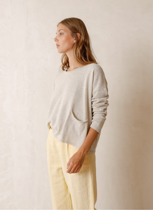 Le confort est incarné dans notre pull en tricot à effet chiné. Il a une coupe carrée, un col rond et des épaules descendues. Il y a une poche avant et le tissu en coton avec du fil rustique le rend très léger.