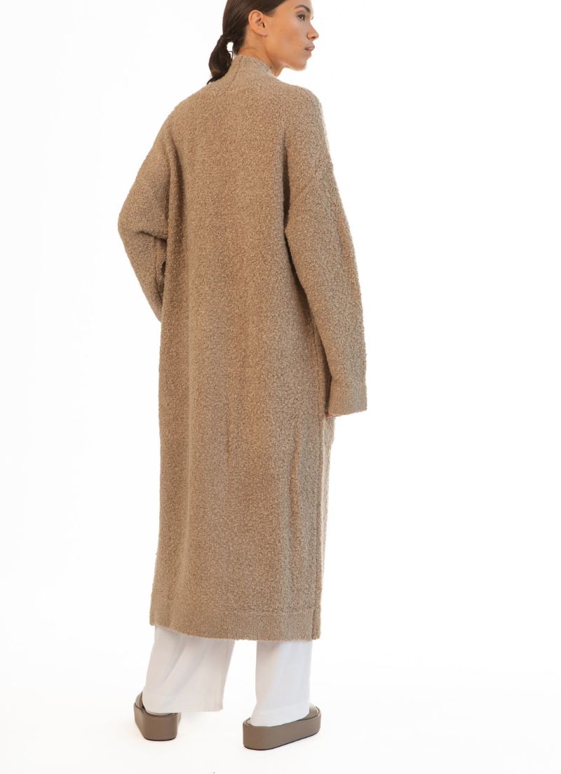 Le confort ne connaît pas de limites avec ce manteau d'intérieur. Les caractéristiques comprennent des poches plaquées, une silhouette surdimensionnée et un bouton pour la fermeture sur le devant. Le fil d'alpaga mélangé en peluche pop-corn est la chaleur parfaite pour les journées froides.