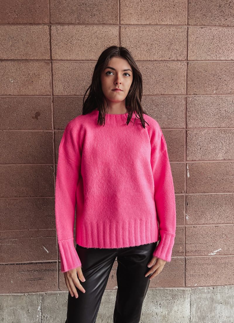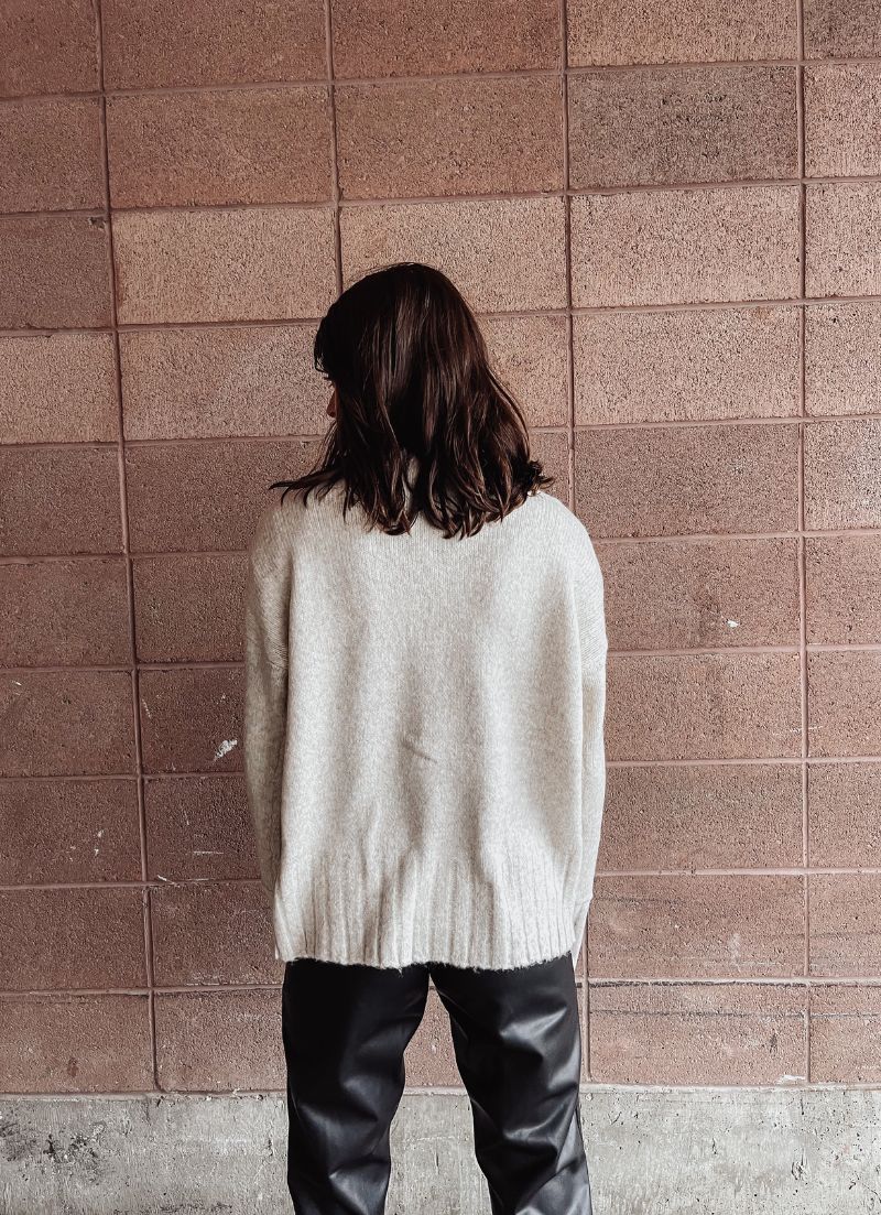 Un pull à poignets côtelés avec une encolure légèrement haute. Super doux avec l’option d’une couleur neutre ou d’une couleur affirmée.