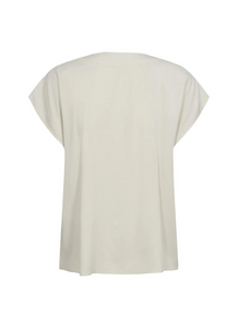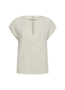 Gillians is a feminine short-sleeved blouse crafted from Viscose. The blouse has relaxed fit and features an open neckline and slanted short sleeves.