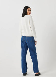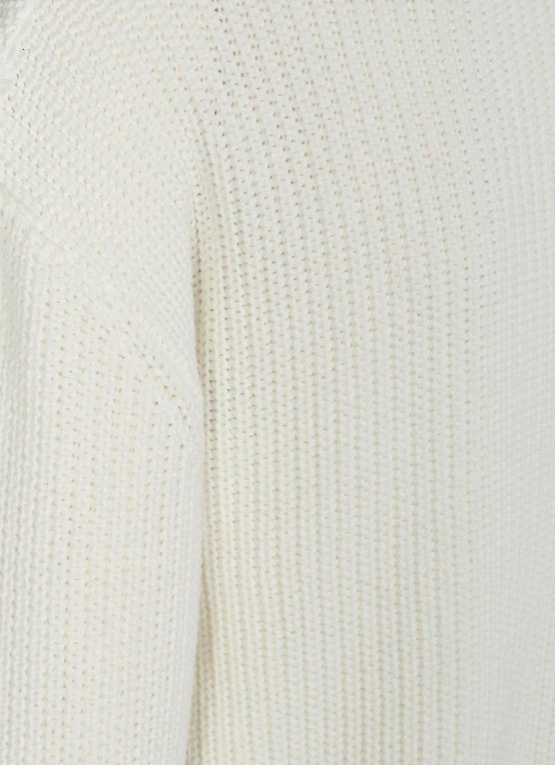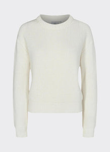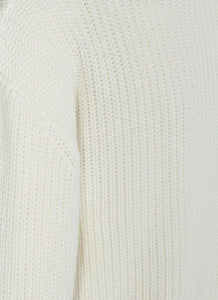 Mikala 2.0 est un pull en maille épaisse, conçu avec une structure côtelée 1 x 1, une coupe légèrement oversize, des épaules descendues et un col rond.