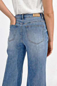 These Brut Jeans are your new denim obsession. Cut with a relaxed wide leg that's anything but boring, they feature a flattering high waist paired with a fun contrast button and zip fly combo. Practical side pockets keep your essentials close, while patch pockets add vintage charm. The light wash across the thighs brings an effortless, sun-kissed vibe that works with everything in your closet.
