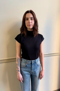Get ready to rock your winter wardrobe with the NY Sleeveless Sweater! This fine sweater features a wide ribbed turtleneck for a cozy and stylish look. With its close-fitting cut, you'll stay warm and on-trend all season long. (Sweater weather never looked so good!)