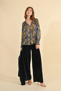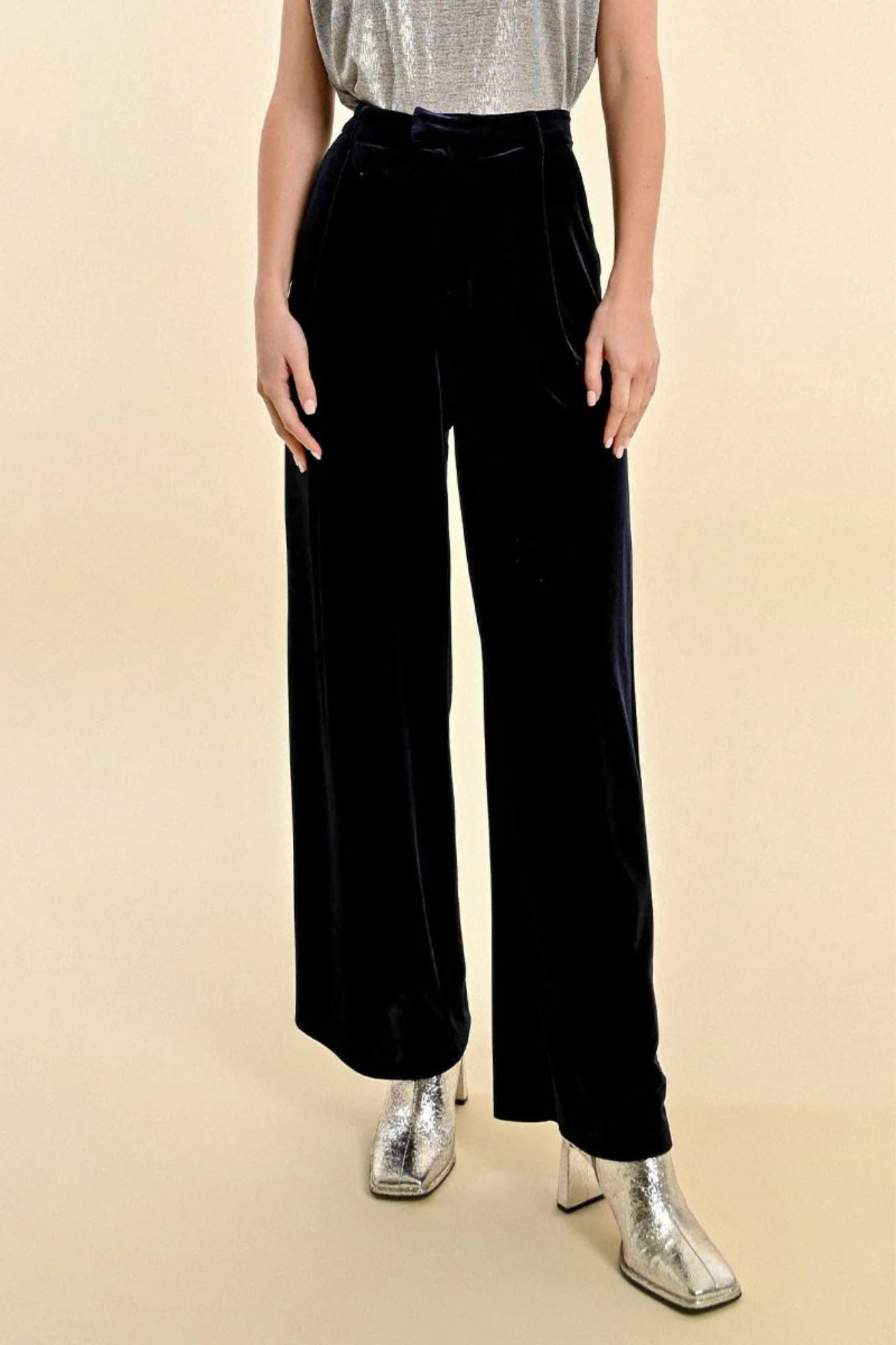 Add a touch of luxe to your wardrobe with Stones Velvet Pants. These high-waisted pants feature a flowy wide leg, Italian pockets for convenience, and marked pleats for a stylish touch. With a zip and hook closure, these velvet pants offer both comfort and chic style. Elevate your look with these must-have pants.
