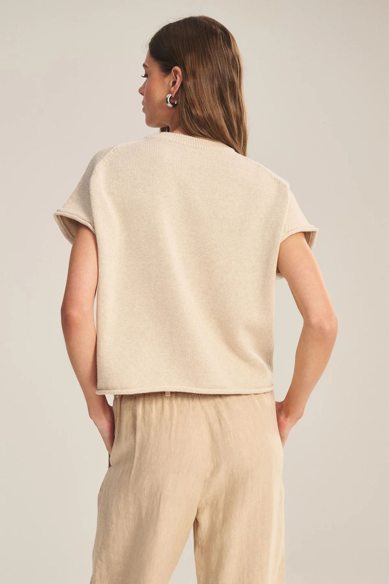 Luxuriously soft cotton-cashmere blend delivers gentle warmth in a cropped silhouette that feels effortlessly chic. The boxy cut pairs perfectly with its crew ribbed neckline, short sleeves, and thoughtfully rolled cuffs and hem for understated sophistication. A refined layering piece that transitions seamlessly from casual to elevated looks, this sweater brings timeless comfort to your everyday rotation.
