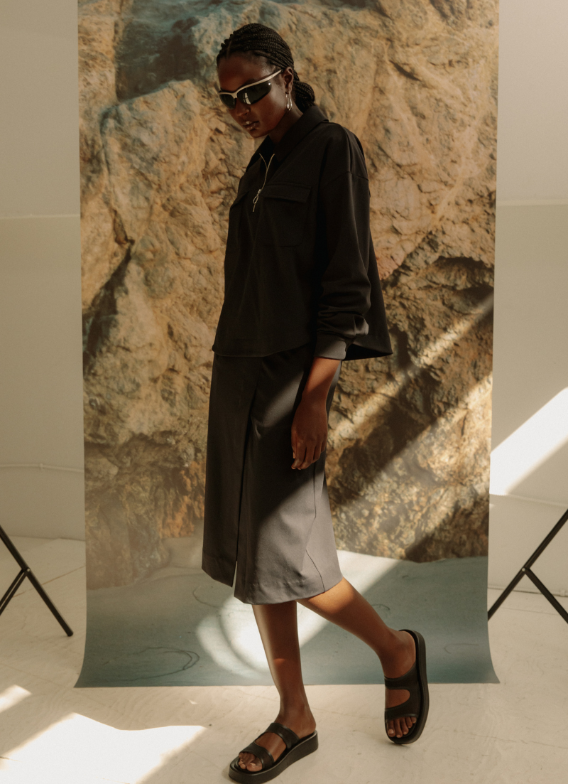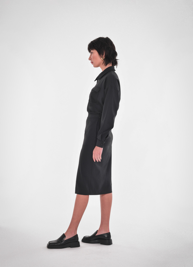 Make a statement without saying a word with our high-rise, classic-fit skirt. Featuring side pockets with a discreet left-side invisible zipper, this skirt seamlessly blends style with functionality. Pair it with our Embry Half Zip Polo and you've got yourself a timeless uniform designed to turn heads.
