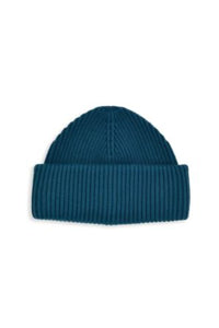 Le bonnet en tricot Minna présente des détails côtelés. Ce chapeau peut être porté avec un bord double plié pour un bonnet de style casquette ou plié simple pour être porté comme une tuque.