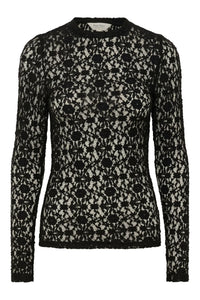 Meet the Venetia Top—your new go-to for effortless elegance. This ivory fitted lace beauty features delicate floral details and a soft, semi-sheer fabric that whispers sophistication. Long sleeves and a classic round neckline keep things refined, while the fitted silhouette flatters every frame. Layer it under a crisp blazer for polished professionalism, or pair it with edgy jeans for a playful contrast that totally works. Whether you're dressing up for something special or elevating your everyday style, this versatile piece does the heavy lifting—because looking put-together should be this easy.