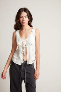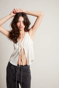 Make a statement with the Lona Front Tie Top! This trendy top boasts a playful front tie design, perfect for those who want to stand out in style. Add a touch of playfulness to any outfit and turn heads with this must-have piece.