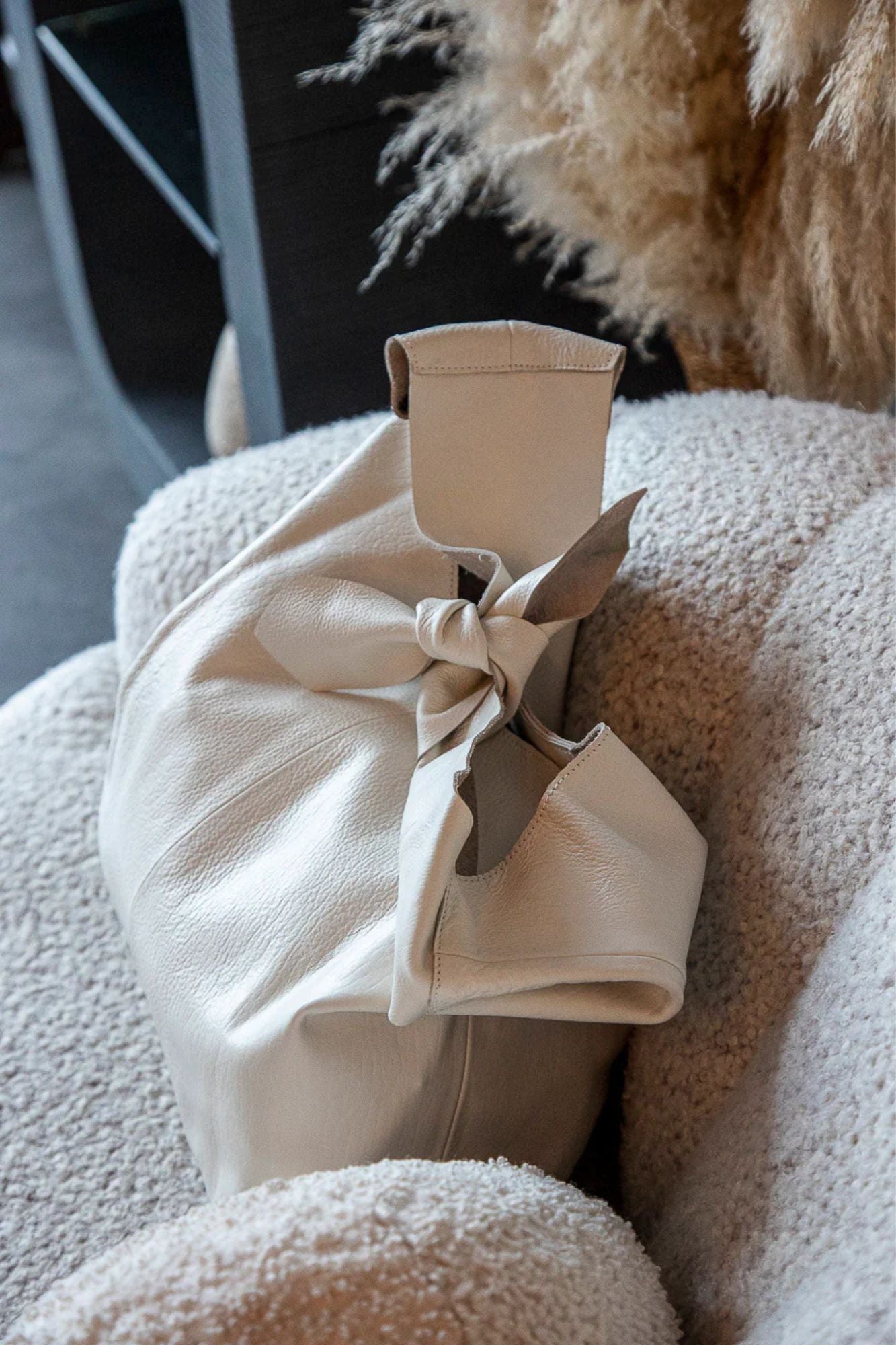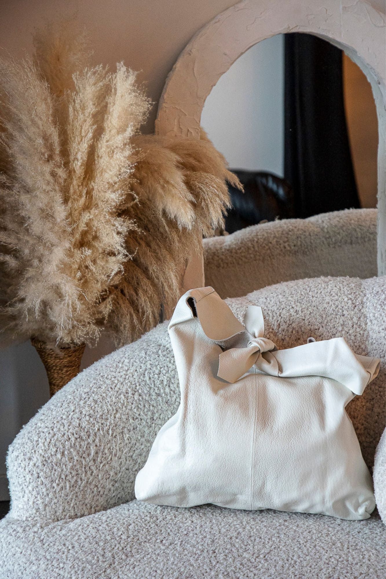 The elegant RISA knot tote is expertly handcrafted by female artisans using luxurious upcycled leather. Its spacious design effortlessly holds your everyday essentials and travel necessities, while the knotted strap can be adjusted to your perfect length. Complete with a magnetic closure and zipper pocket, this hobo tote is both stylish and functional.