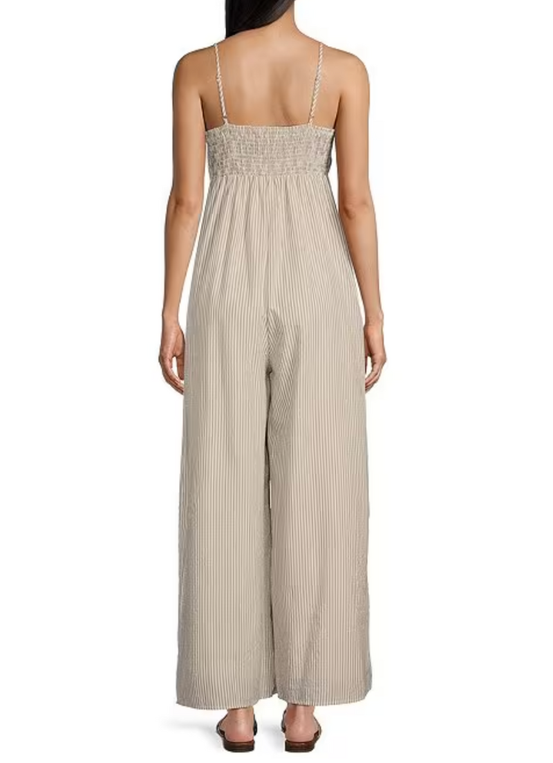 Get ready to turn heads and catch some rays in the Sands Stripe Jumpsuit. Featuring a trendy stripe pattern and lightweight woven fabric, this jumpsuit screams summertime fun. With a flattering square neckline and adjustable straps, it's both stylish and comfortable. Plus, with side pockets and easy pull-on styling, it's the perfect combination of fashion and function. Step into the sun in style with this must-have piece. (Seriously, it's a must-have - trust us!)