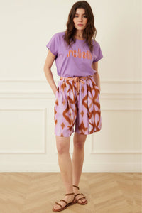 Elevate your summer wardrobe with the Socrate Short, featuring an eye-catching abstract print on luxurious viscose fabric that caresses your skin with every movement. The high-waisted design with tie waist detail creates a flattering silhouette, while the bermuda length offers sophisticated coverage. These shorts drape beautifully for all-day comfort and effortless style.
