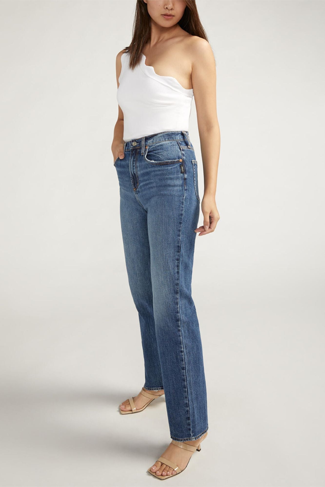 Elevate your denim game with Highly Desirable High Rise Straight Leg Jeans. This vintage-inspired design from Silver Jeans has the highest rise for a flattering fit at the waist, a slimming effect through the hip and thigh, and a relaxed leg. Plus, enjoy an epic buttocks lift with old-school details for a '90s feel.