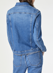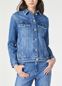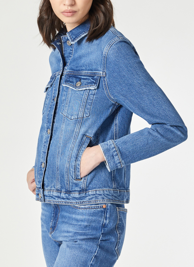 est un denim d'épaisseur moyenne avec une quantité modérée d'élasticité et la texture du denim traditionnel. Un mélange de Tencel™ et de coton recyclé leur confère une sensation de luxe supérieure qui est également durable. Conçue avec plus d'espace pour créer une silhouette nostalgique, Katy est notre veste en jean d'inspiration rétro qui passe facilement du jour au soir. Les poches avant, les fermetures boutonnées et le col classique sont autant de détails qui soulignent le côté vintage de ce style.