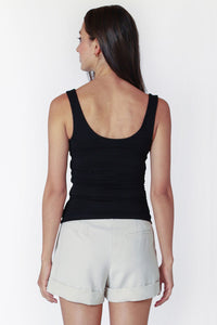Our Essential Tank is the ultimate wardrobe must-have - perfect for any occasion! Its form-fitting design not only flatters your figure, but also ensures all-day comfort. Rock a versatile and stylish look with this must-have basic tank top, complete with gathered sides.