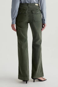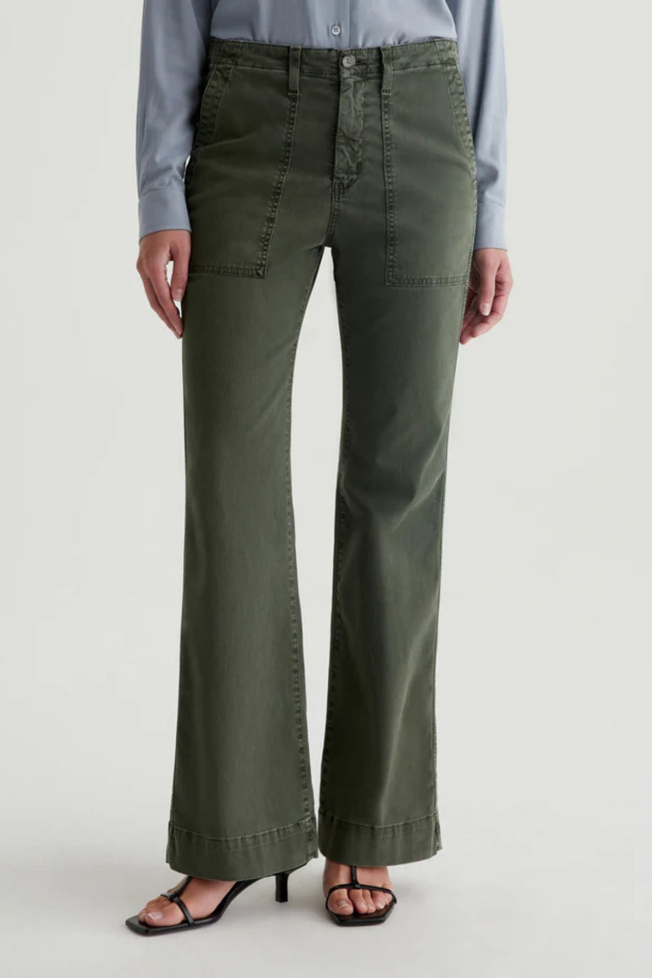 Experience unmatched comfort and style with Juliet, the high-rise flare pants designed with utility-inspired pockets. Made from 7.9 oz. Sorrento Stretch Twill from Italy, these pants have a soft, refined feel and a dark green shade achieved through sulfur-dyeing. Elevate your wardrobe with Juliet's unique blend of functionality and luxury.