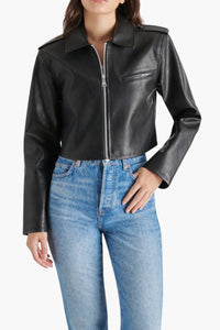 Expertly crafted with shiny silvertone hardware and buttery faux leather, the Verone Jacket exudes edgy sophistication. The zip-front design adds modern functionality, making it the perfect blend of style and practicality. Elevate your wardrobe with this must-have piece.