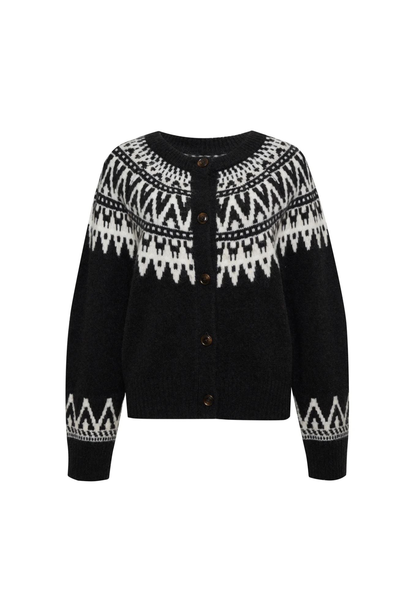 This Fairisle Crewneck Cardi combines classic style with conscious design. Featuring a button-front closure and ribbed cuffs, it offers a relaxed fit that ensures comfort all day long. Crafted from sustainably sourced recycled polyester, this cardigan not only keeps you cozy but also supports eco-friendly fashion choices. Elevate your wardrobe with a piece that blends timeless appeal and responsible materials.