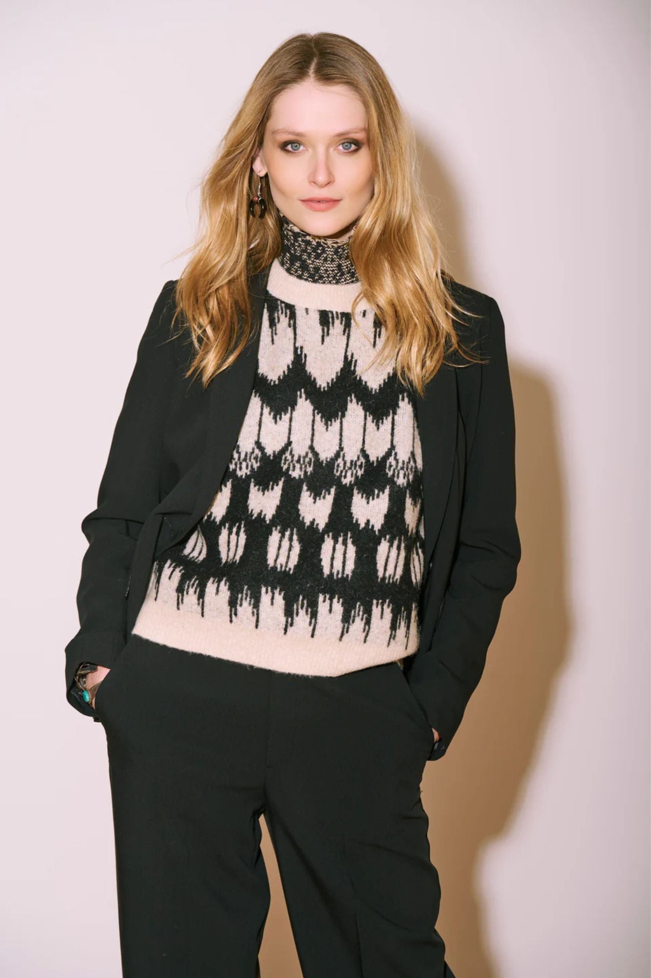 30% Merino Wool, 30% Acrylic, 22% Polyamide, 15% Alpaca and 3% Elastane.