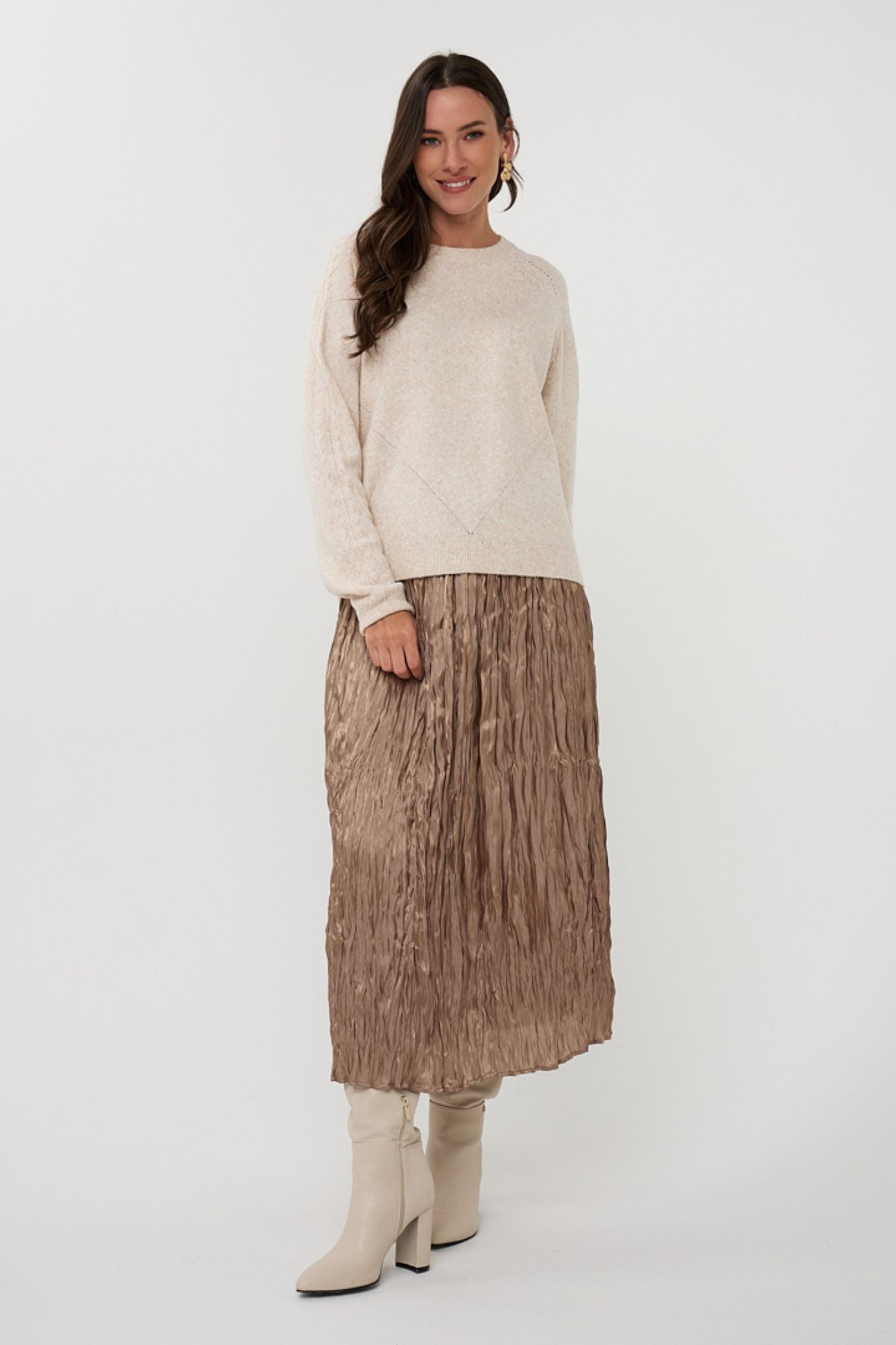 This lightweight sweater features a charming crew neck and a playful ajour knit pattern that adds a touch of whimsy to your outfit. Perfect for layering or wearing on its own, it combines comfort with a cute, breezy style that’s ready to brighten your day.