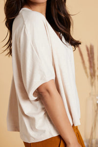 The Omari Top is a must-have for those seeking comfort and style. Made from organic cotton slub fabric, this flowy top features a subtle v-neck and roomy fit for an effortless yet chic look. Perfect for any occasion, the Omari Top offers a touch of luxury to your wardrobe.