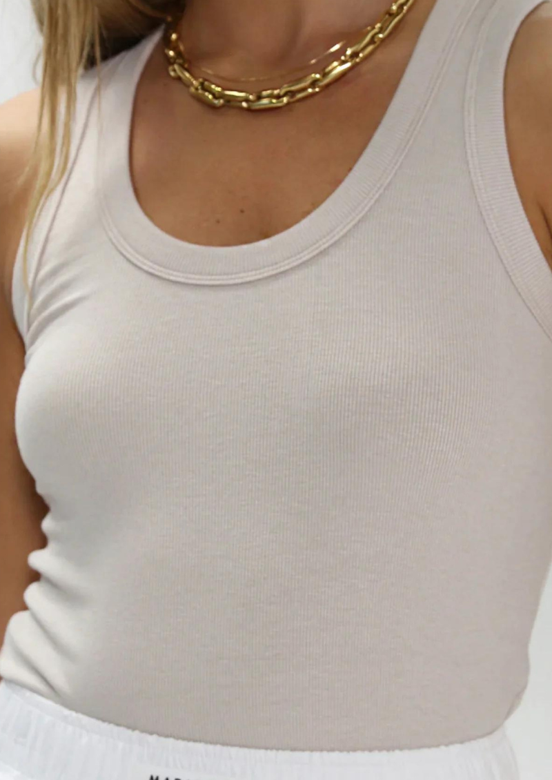 Présentation du Sinclair Rib Top : votre nouveau incontournable pour un style et un confort sans effort. Fabriqué dans un tissu côtelé doux, ce débardeur sans manches présente une encolure dégagée et des bretelles épaisses pour une silhouette ajustée. Le détail de reliure épaisse sur les coutures ajoute une touche de style. Améliorez votre jeu de base maintenant !