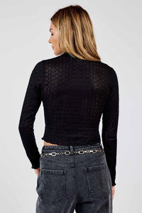 Discover elegance and comfort with the Sadie & Sage Flagship Lace Top. Made from high-quality stretch lace, this long-sleeve top is perfect for any occasion. Add a touch of sophistication to your wardrobe with this must-have fashion piece.