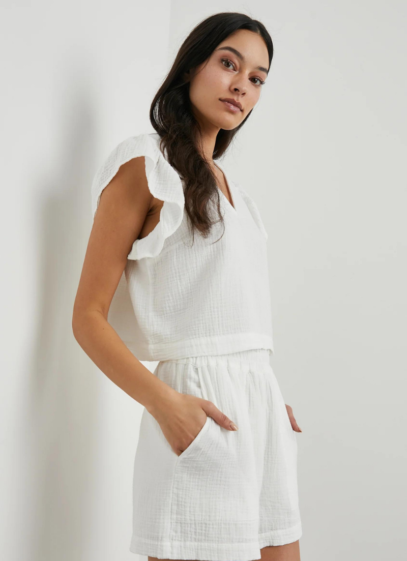Made with super soft, breezy double gauze cotton in a slightly cropped pullover silhouette, this top is perfect for transitional weather.