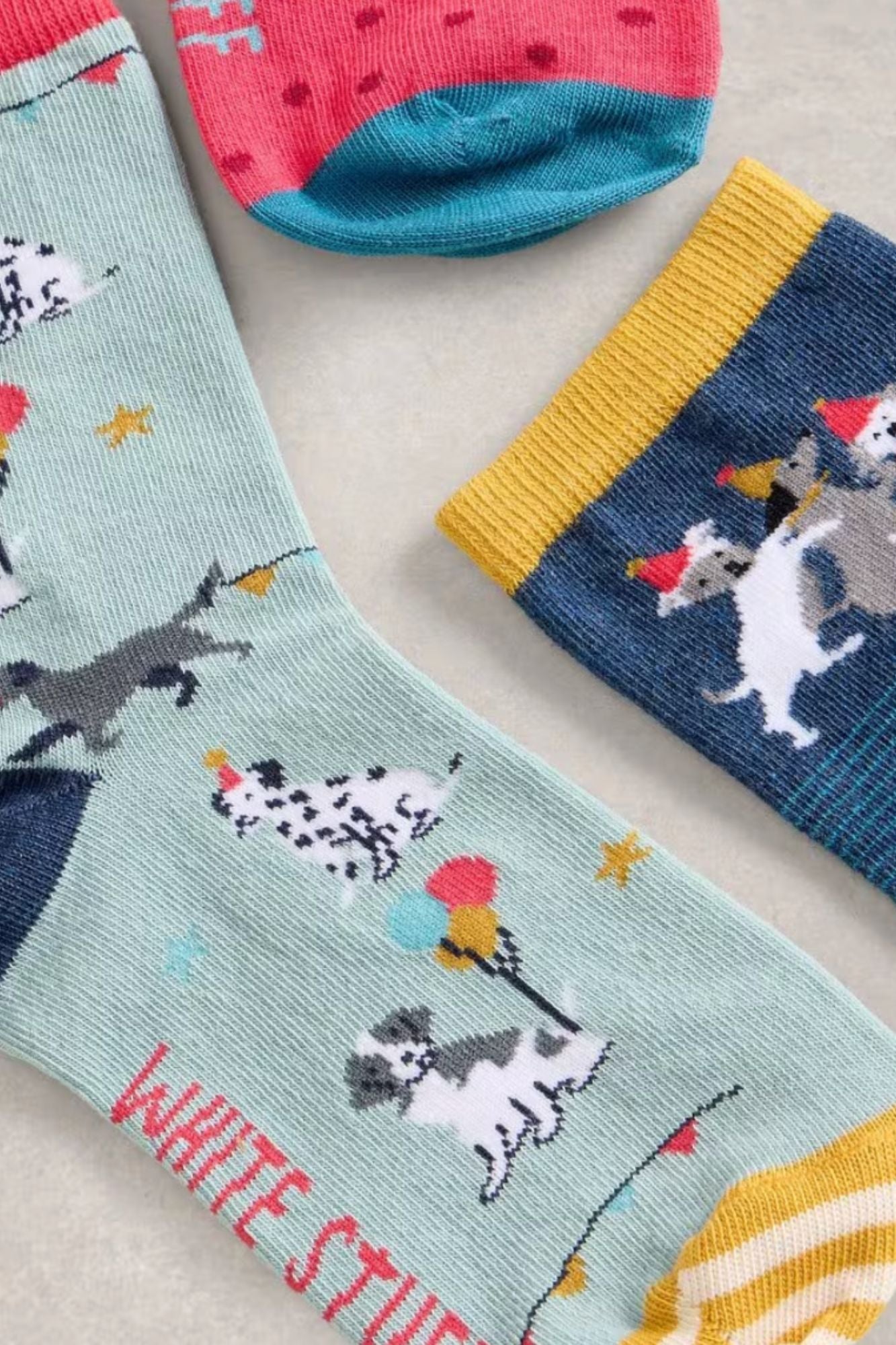 Three tiny embroidered pups ready to celebrate are now on your feet—literally a party in sock form. This cheerful 3-pack features adorable dog designs that bring instant joy to your everyday style. Perfect for dog lovers who refuse to take their fashion too seriously, these ankle socks combine comfort with personality. Mix, match, and spread the good vibes one step at a time.
