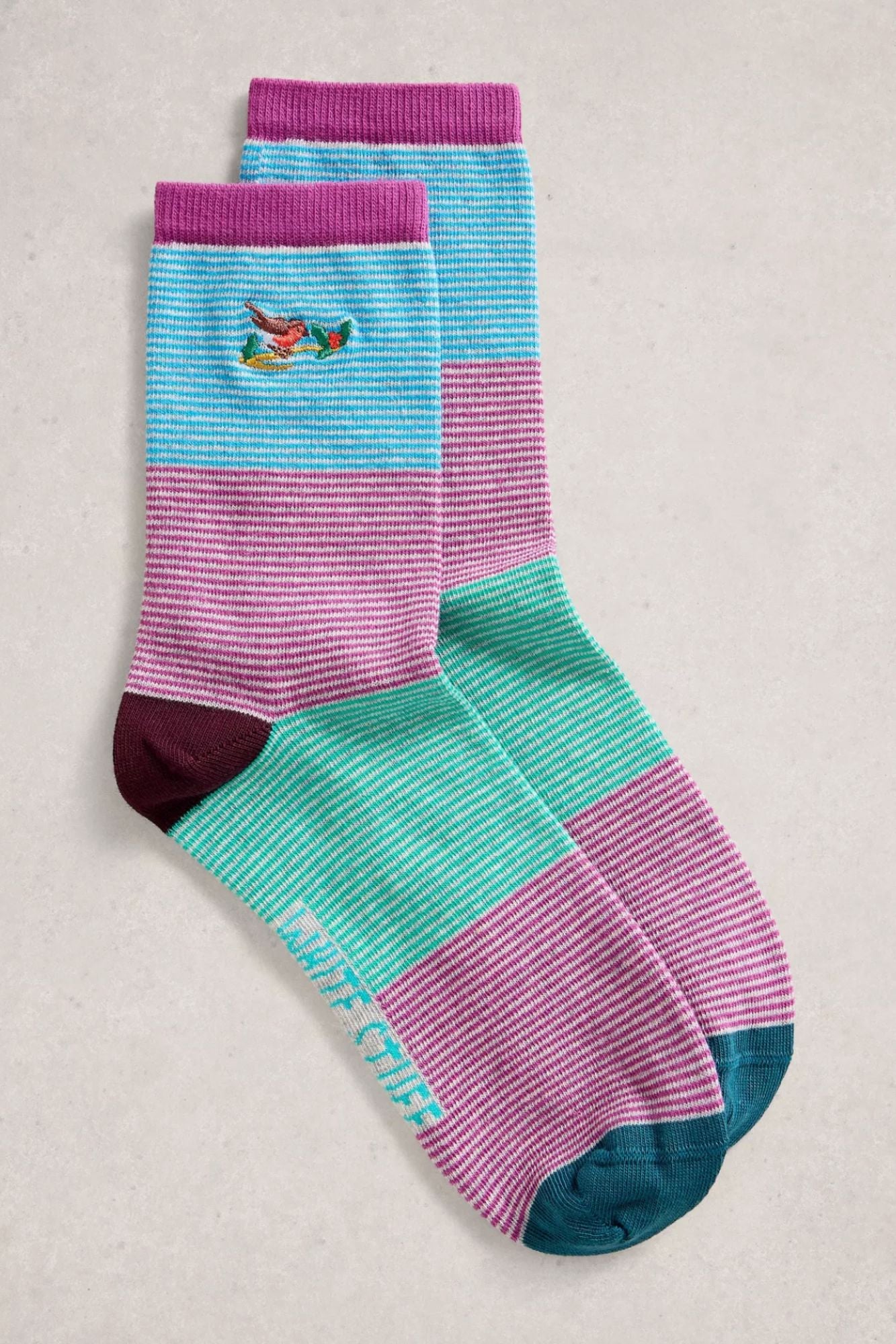 Step up your sock game with these charming embroidered ankle socks! Featuring playful striped detailing and delicate embroidery, they're the perfect way to add personality to your everyday look. Comfortable enough for all-day wear, these socks bring a touch of whimsy to your drawer. Whether you're dressing up or keeping it casual, they're sure to bring a smile to your face—literally, since only you'll know about your fun fashion secret!