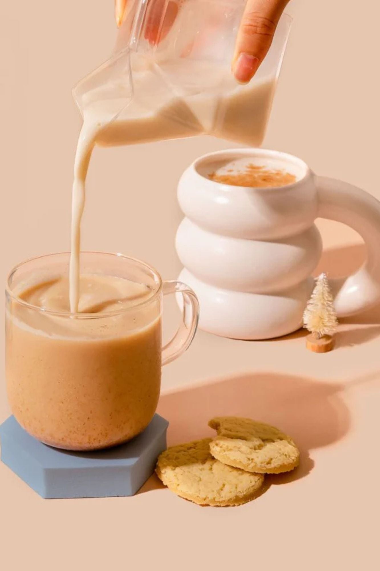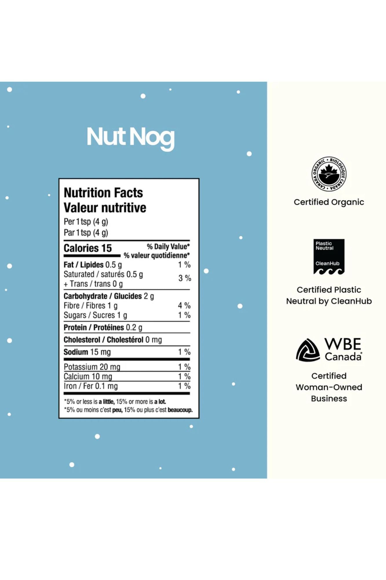 Indulge in a creamy holiday treat with our Nut Nog Blend. Crafted with reishi for a winter pick-me-up, this vegan eggnog features floral vanilla, warm nutmeg, and cinnamon. Free of nuts, dairy, caffeine, and with low sugar, it's a guilt-free delight.