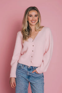 Introducing the Valentina Cardigan—your new favorite layering essential! Crafted from an irresistibly soft knit blend, this cozy piece wraps you in warmth with its relaxed, boxy silhouette. The gathered voluminous shoulders create a flattering, effortless vibe, while ribbed cuffs keep everything polished. Topped with charming silver heart-shaped buttons, it's the sweetest way to stay snug and stylish. Perfect for those moments when comfort meets personality.