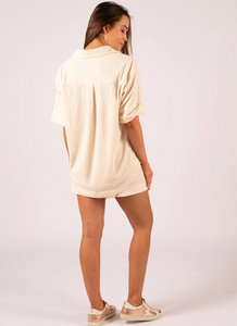 Unleash your quirky side with the Stephanie Towelling Shirt. Featuring a button front with tortoise shell buttons and a turned back cuff on the sleeves, this shirt offers a playful twist on a classic design.