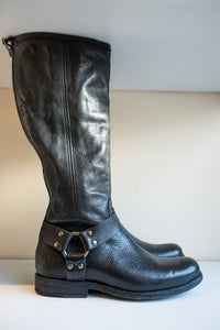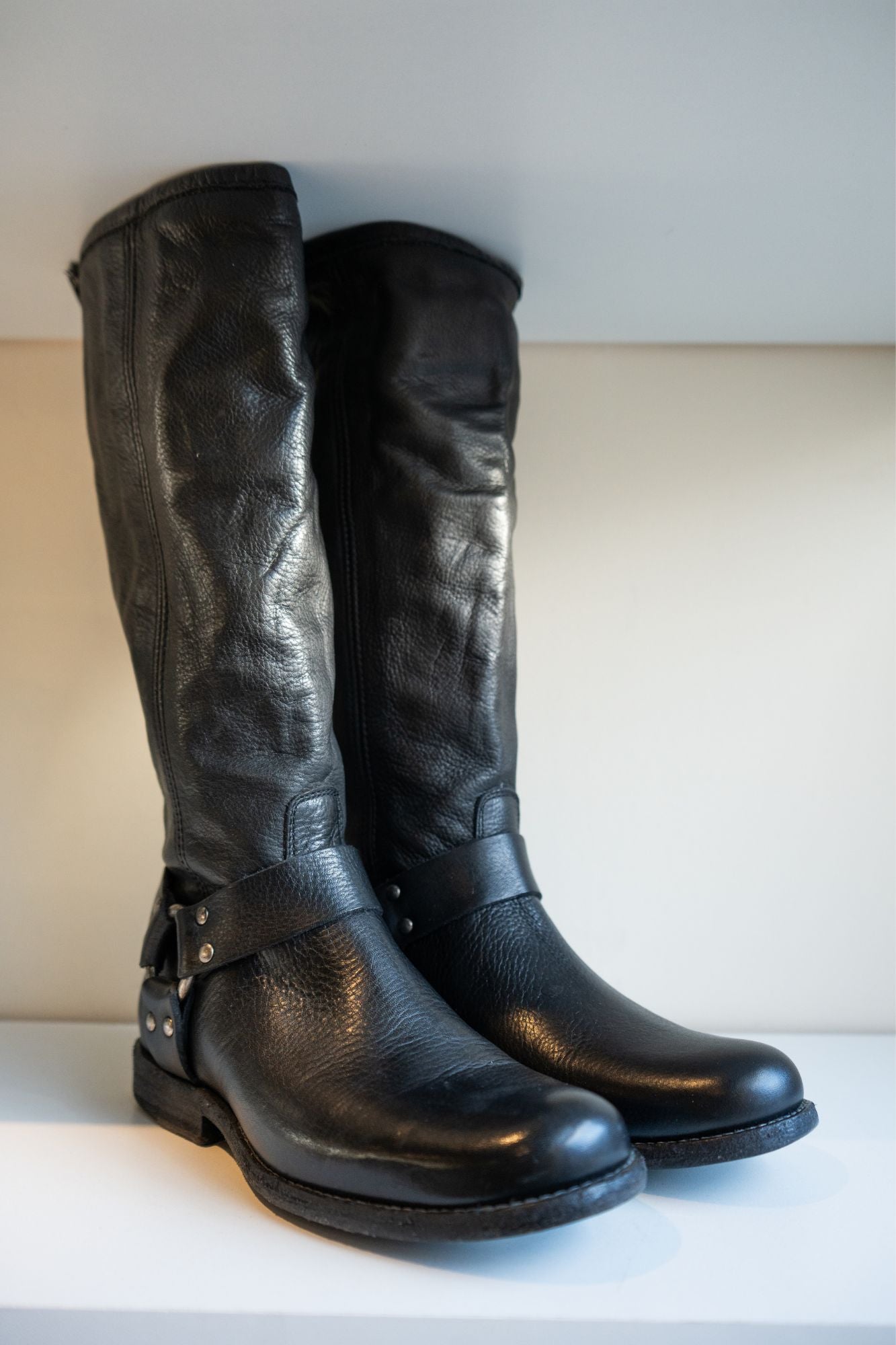 Elevate your style with our Phillip Harness Tall boots. With a modern edge, these tall boots feature harness hardware and a convenient back zip closure. Crafted from high-quality waxed vegetable Italian calf leather, these boots are sure to make a statement and withstand the test of time.