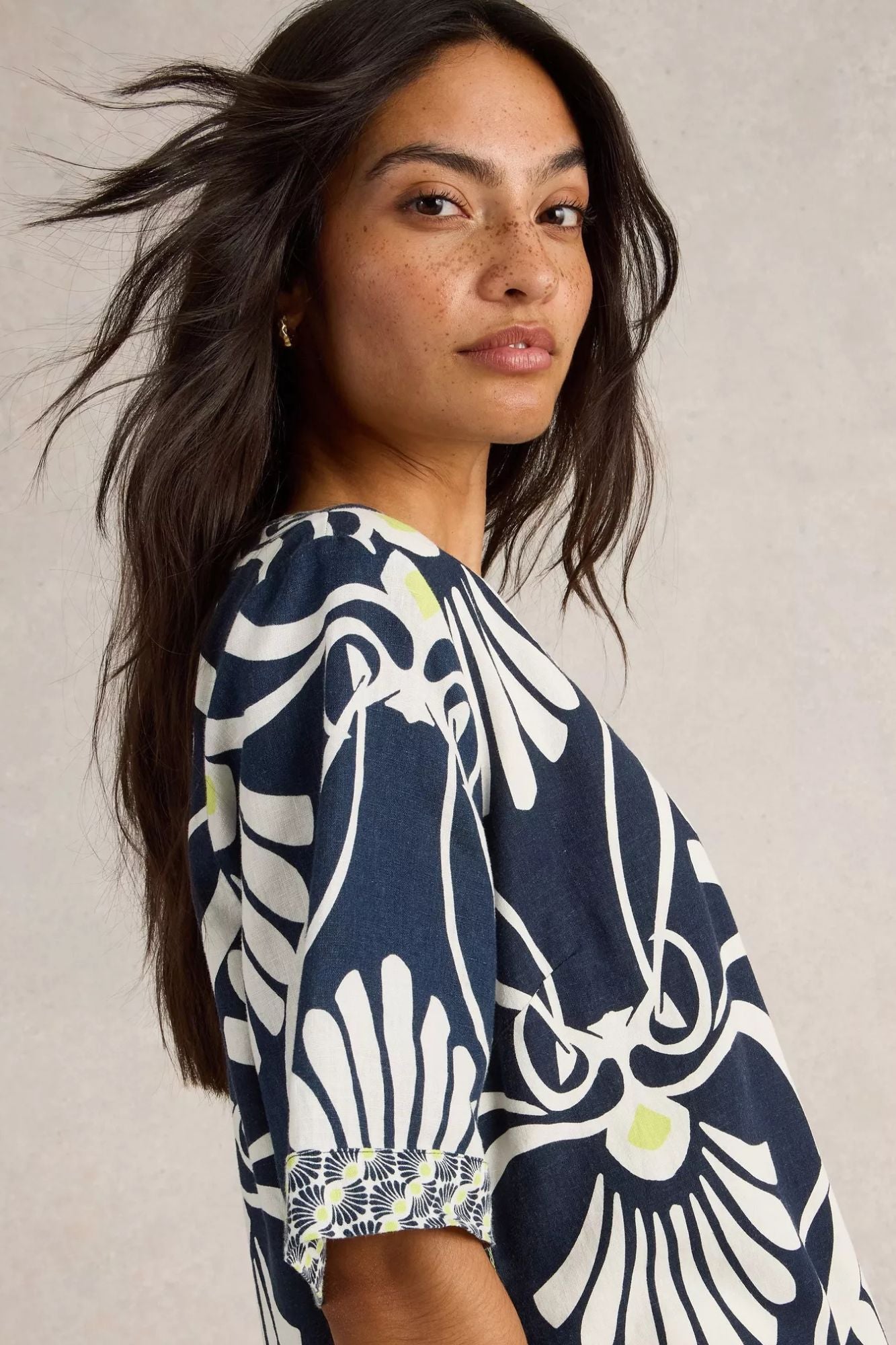 Elevate your style with our Ash Linen Top featuring a flattering notch neck, relaxed fit, and short sleeves. The boxy style adds a modern touch while the smooth linen fabric provides comfort and breathability. Look effortlessly chic in this versatile top.