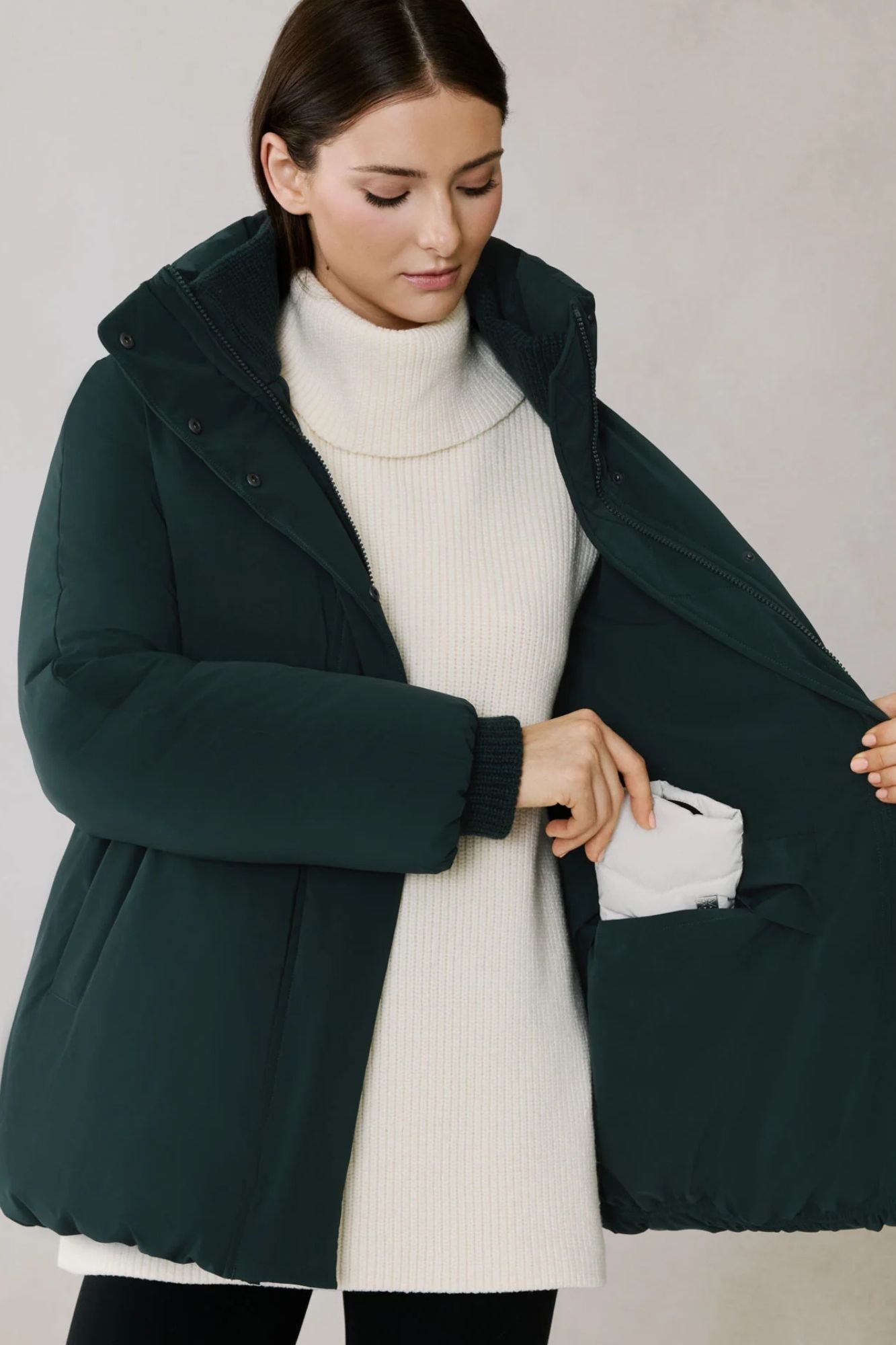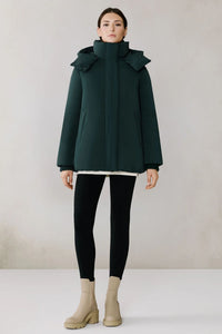 The ELMIRA by SOIA & KYO is crafted for cold-weather confidence with its elasticized balloon silhouette and detachable hood. Filled with 700+ fill power premium down, it offers exceptional warmth down to -25 °C. Thoughtful details like a chunky knit inner collar, storm cuffs, and fleece-lined pockets combine comfort and style. The straight fit and sleek hardware finish the look, making it your perfect winter essential for both functionality and fashion.
