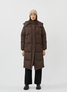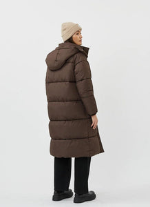 Flawly est une doudoune longue hydrofuge isolée avec dupont™, qui garde le corps au chaud tout en restant légère et respirante. Il a une coupe classique et comporte une fermeture à glissière et un bouton, des poignets coupe-vent, deux poches et une grande capuche réglable.