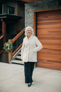 Il n'y a rien de comparable au Madie. Ce manteau d'automne et d'hiver sans col en fausse peau de mouton mi-cuisse est doté d'une fermeture à pression cachée cousue à la main et de poches passepoilées en laine combinées inclinées. Portez ce confortable accessoire pour une soirée en ville ou une escapade d'un week-end.