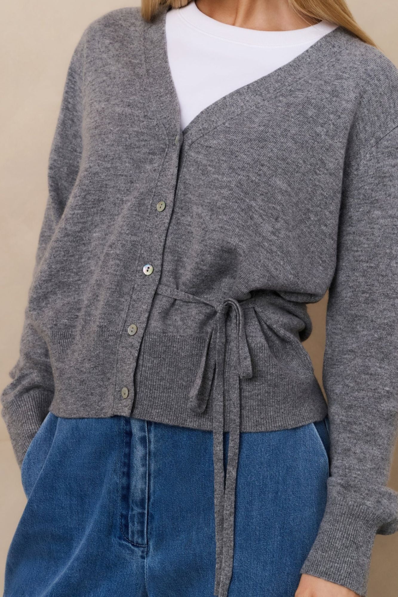 The Ash Cardigan offers a soft, knitted feel with a flattering deep V-neckline and button closure for easy wear. Its elegant waist tie highlights your silhouette, while long sleeves and ribbed trims ensure comfort and a perfect fit. This versatile piece effortlessly adapts from relaxed daytime styles to polished evening looks, making it a must-have addition to your wardrobe.
