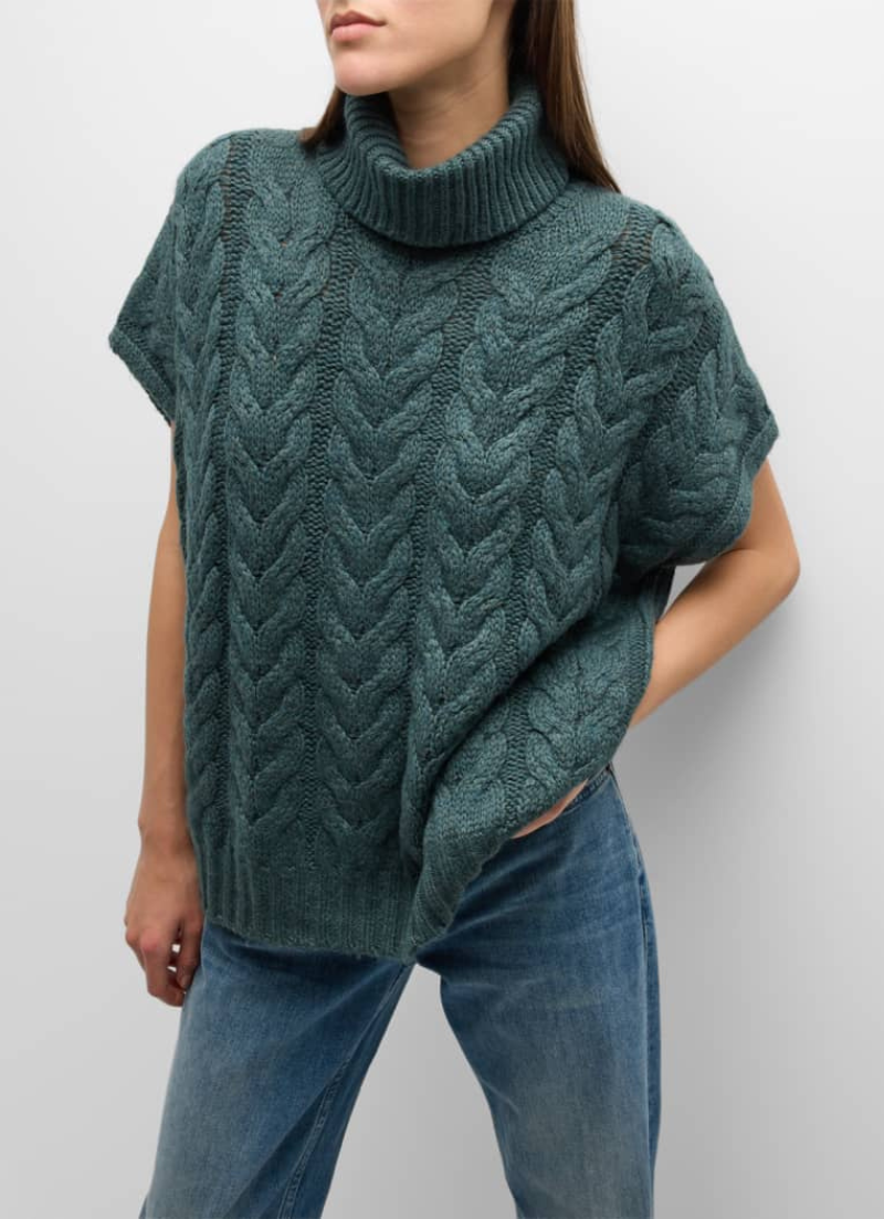 Soyez la plus chic de la pièce avec le pull torsadé Abbott ! Ce pull à col roulé doux, doté de bordures côtelées et de manches courtes, vous donnera un look confortable et élégant. Arrêtez la circulation avec la pièce ultime en tricot torsadé !